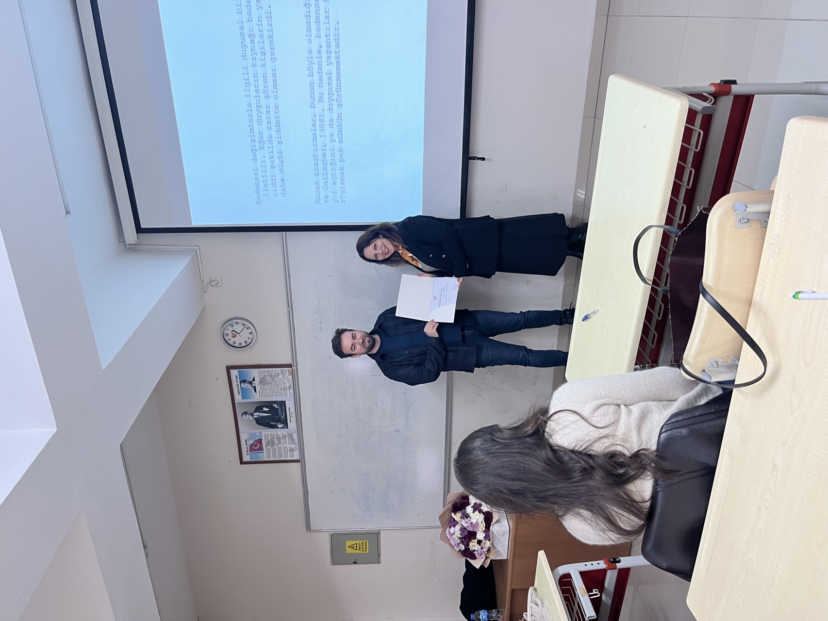 Gerçekleştirilen bu anlamlı ziyarette, Bölüm Başkanımız Dr. Öğr. Üyesi Fatma Dilek Şeker tarafından Doç. Dr. Gökhan Şahin’e, ders süresince gösterdiği emek ve bölümümüze sağladığı akademik katkılar dolayısıyla teşekkür belgesi takdim edildi.